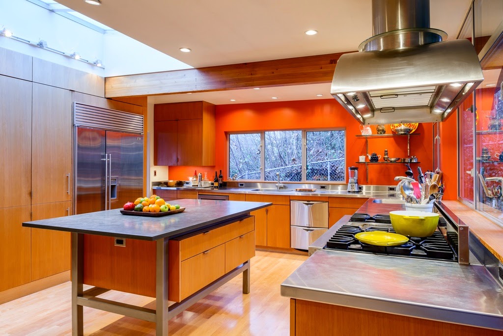 butcher block countertops. Keep in mind that strong colors are best balanced with